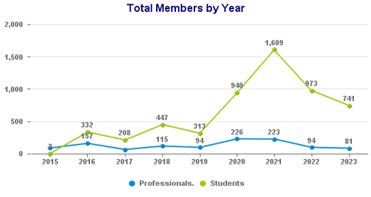 The following figure illustrates the section’s membership, encompassing both professional members within the section and student members in the SPE Student Chapters sponsored by the section, both inside and outside Iraq.
